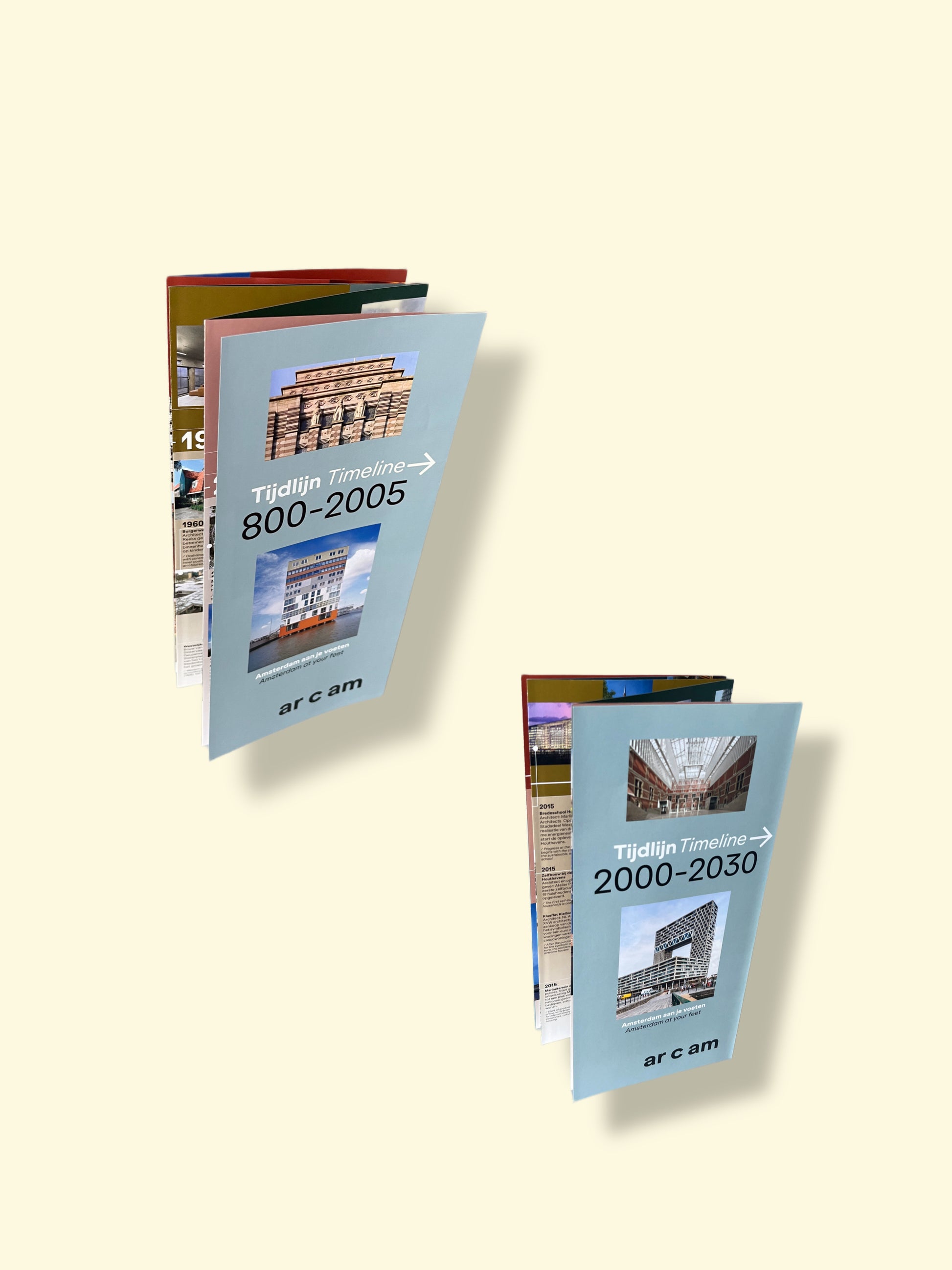 Maak een reis door de architectuurgeschiedenis van Amsterdam van 800 tot nu met de nieuwe Tijdlijn Amsterdam in handzaam uitvouwformaat!